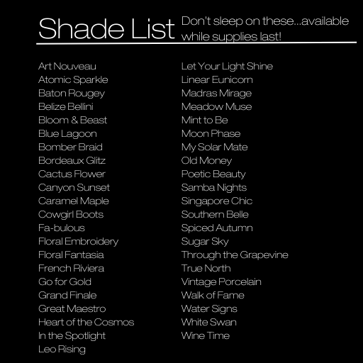 - Star Bright – a stunning silver base with black portrait shading, accented by pink purple and blue ombres.