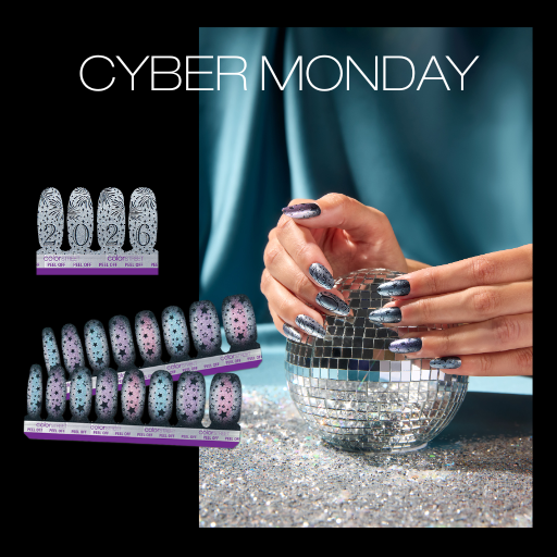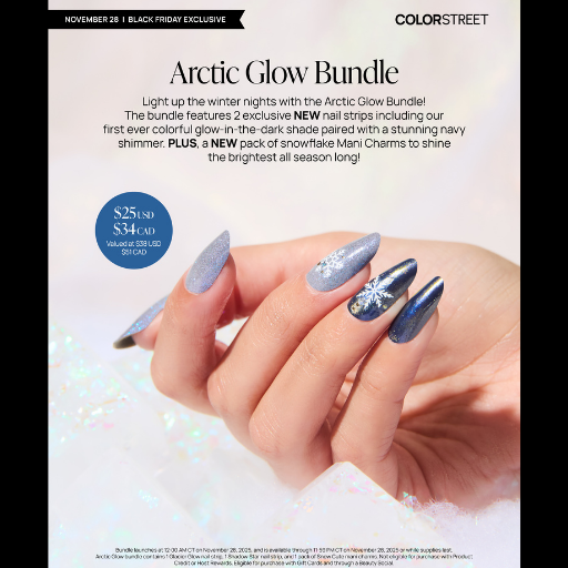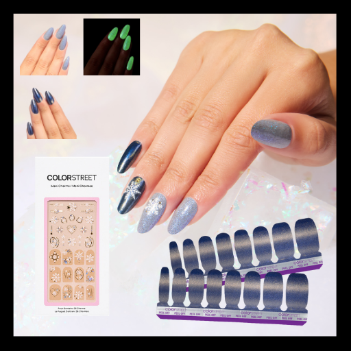 Black Friday SPECIAL OFFERING includes two full-sized nail strips + snowflake Mani Charms. Even better? One glows in the dark!