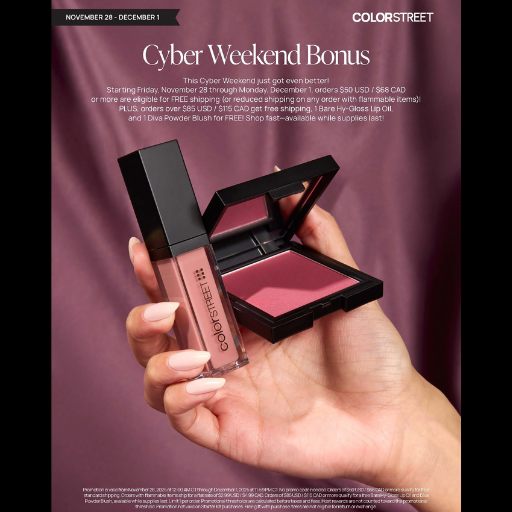 Cyber Weekend Bonus: Free/reduced shipping for purchases greater than $50; gift with purchase for amounts above $85.