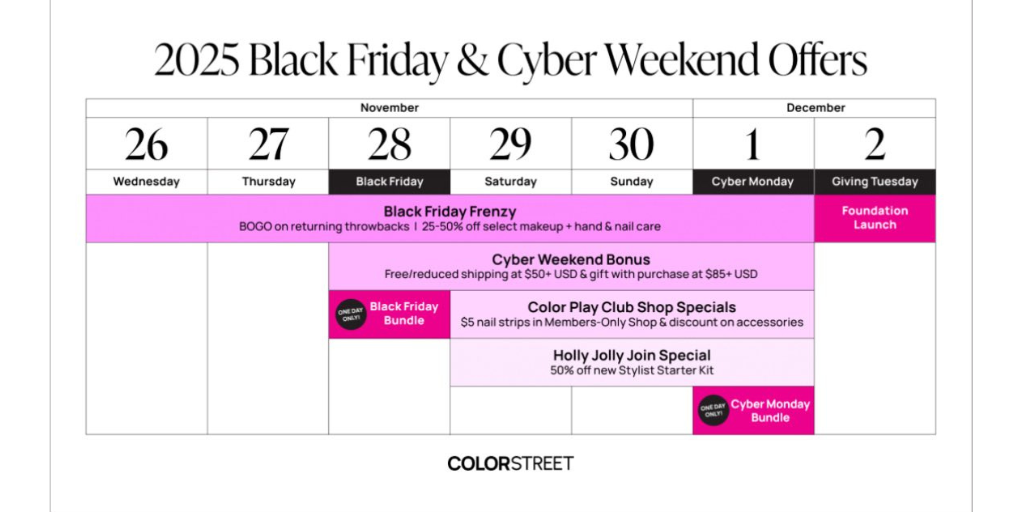 Black Friday Frenzy: Buy one, get one free on vault designs, plus 25-50% off on select makeup and hand/nail care items.